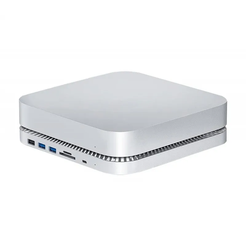 The Newell USB-C Hub with Drive Adapter is a unique stand that turns your Mac mini into a powerful workstation. It also extends the functionality of dozens of USB-C-equipped desktops, laptops, tablets, and smartphones. You can install a SATA drive (SSD or HDD) inside, gaining up to 2TB of additional space for your data. The Newell Hub USB-C also allows you to use 2 memory cards with a maximum capacity of 1TB simultaneously: SD and Micro SD. The hub is equipped with a number of ports offering fast data transmission (1 x USB-C, 2 x USB 3.0, 1 x USB 2.0). The manufacturer also took care of a proprietary ventilation and heat dissipation system. This multitasking and stylish hub made of durable aluminum will become a decoration of any workstation!