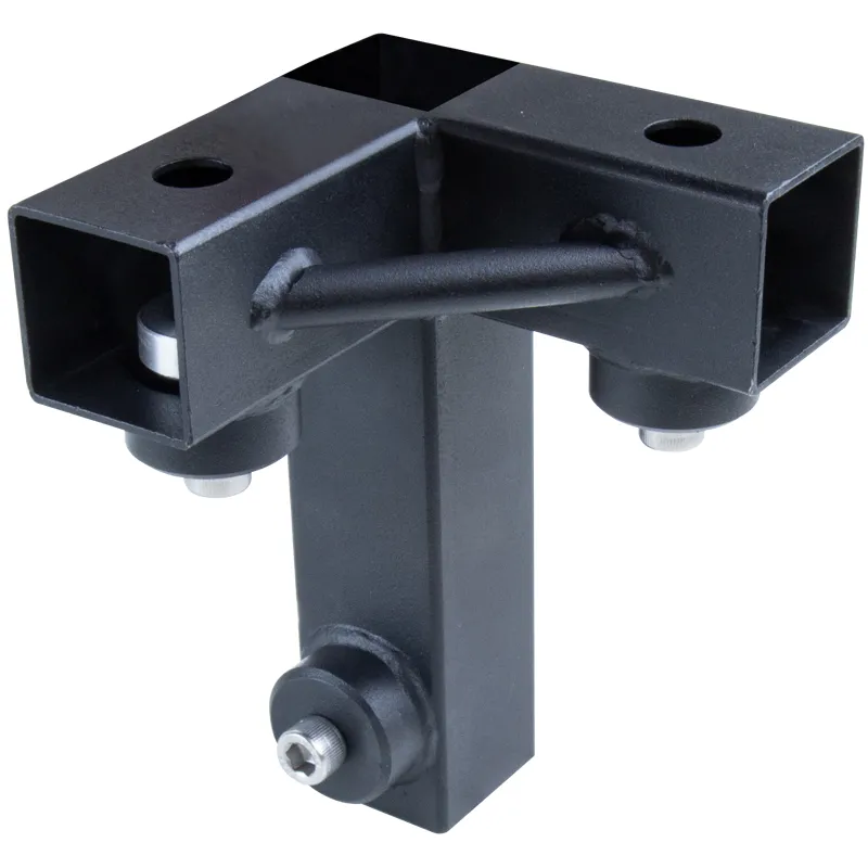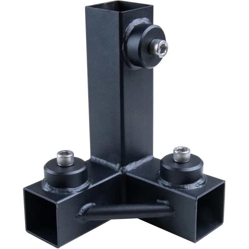 The 3-way box corner is designed for creating a window to block or filter light, or for a custom-sized softbox to be flown overhead. It is constructed from solid steel tubing for a standard 30x30mm butterfly frame. The threaded socket is welded and features a 5/16 hex thread with a metal brake, providing a neat and tidy fixing without damaging the tube.