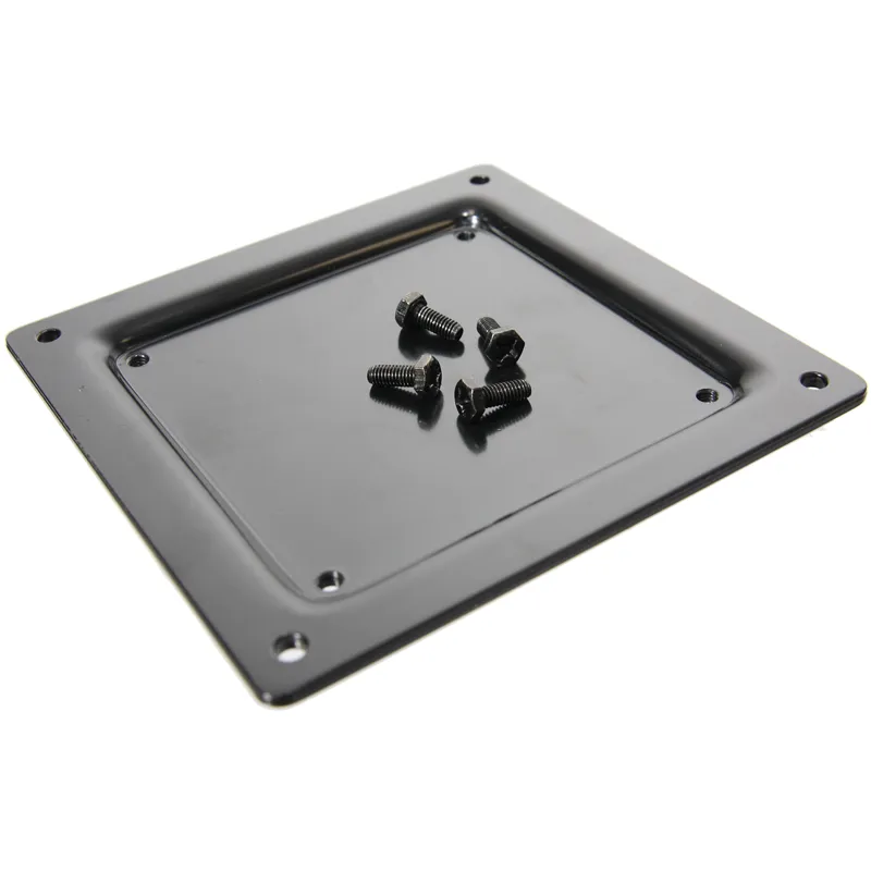 The Monitor Adapters standard VESA 75mm x 75mm base attaches directly to the back of the monitor; a steel 100mm x 100mm adapter is also included for TVs requiring that size.