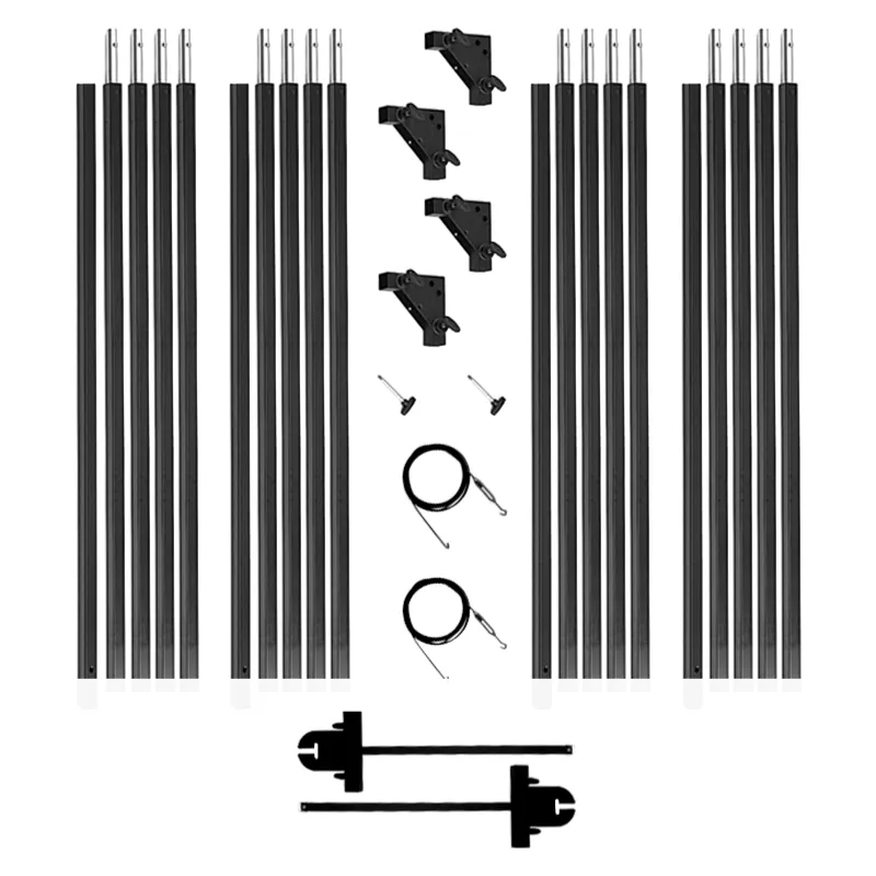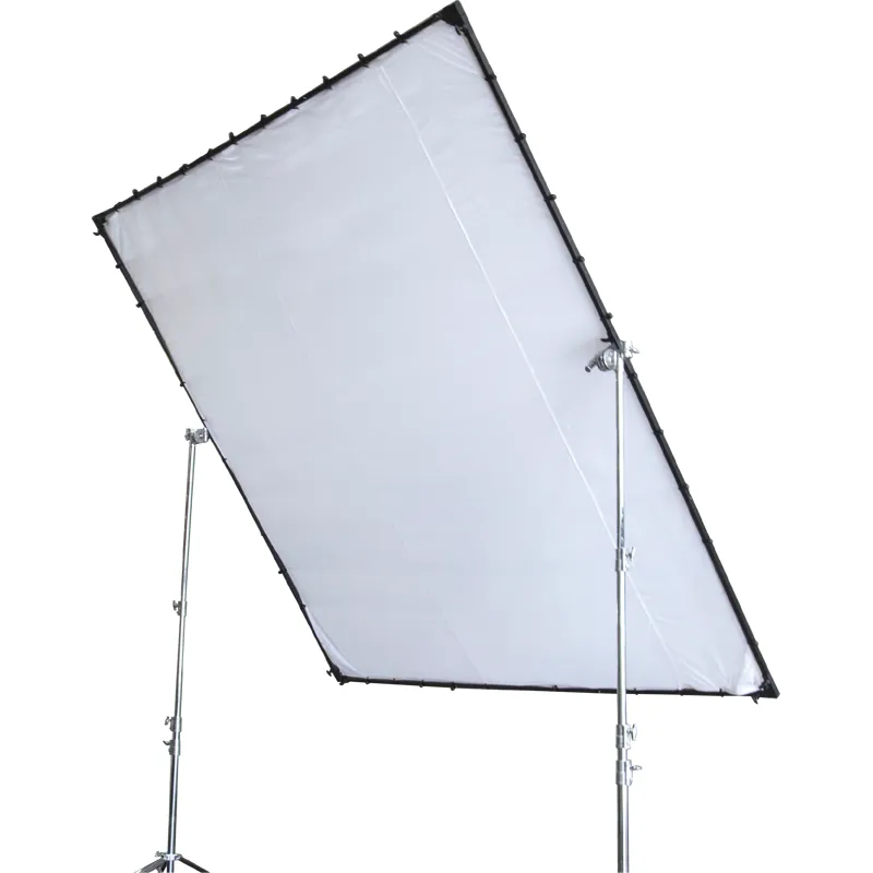 Stud type frame support and safety wire are provided for mounting the butterfly frame on stands, allowing for a stable frame for silks, scrims, etc. This is a 20 X 20 butterfly frame. It can also create a 12 X 12, 8 X 8, and a 4 X 4 frame.