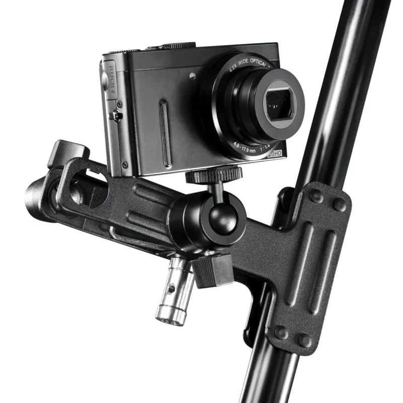 This 4in1 professional clamp is the ideal helper in your photo studio, for example to fasten and position reflectors, brighteners or props. Due to the multitude of mounts, this clamp can be used in extremely versatile ways.