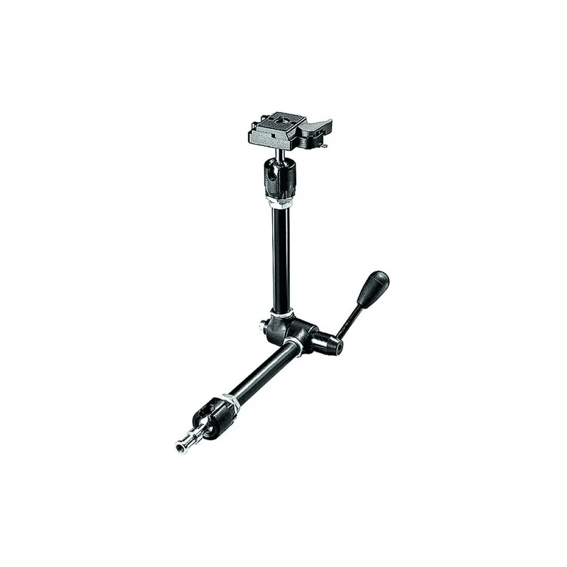Requires Super Clamp or Base with 1/4"-20 Male Threads This Manfrotto Magic Arm with Quick Release is a fully articulated arm with 90° pivotable and 360° rotatable ends, and an elbow that rotates 360°. The lever tightens and locks for precise positioning of a small light head or camera. It has 5/8" studs at each end with 1/4"-20 female threads. It is supplied with a camera platform that has a quick-release mechanism and plate with 1/4"-20 thread.