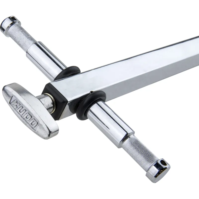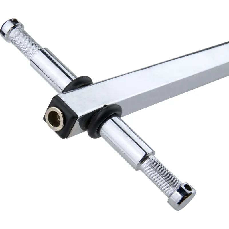 The handy adapter allows you to mount multiple light fixtures or accessories onto a single light stand. It features five baby studs with embossed necks welded onto sturdy steel, measured at 20mm(H) x 20mm(W) x 800mm(L) and offset for mounting five lights. This adapter can be mounted on the stand top of a baby stud (16mm) or fit into a junior receiver (28mm). Additionally, there is a 5/16-18 threaded nub on the side of the bar to hold the knob when using it on a junior stand.