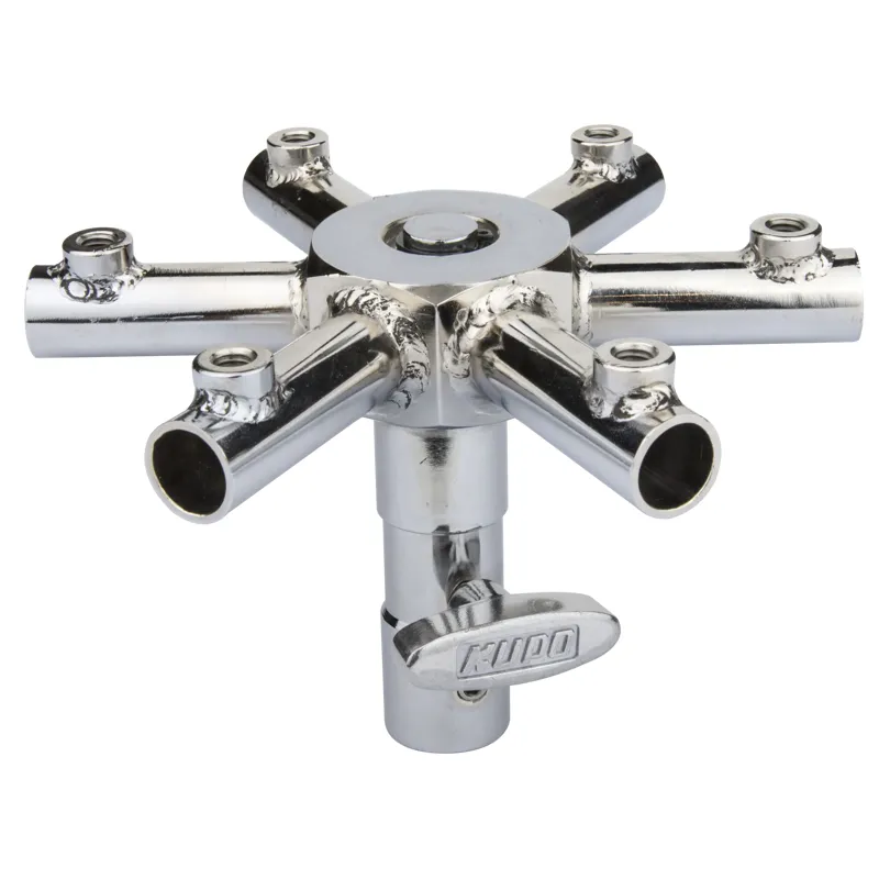 Constructed from solid steel and chrome plated, this pipe spinning gag consists of six 5/8 (16mm) baby receivers with set screws and is terminated with a TVMP adapter. This adapter allows fitting into a 1-1/8 (28mm) junior receiver or a 5/8 (16mm) baby stud. The top end features 3/8-16 threads for easy addition of a fixed plate.