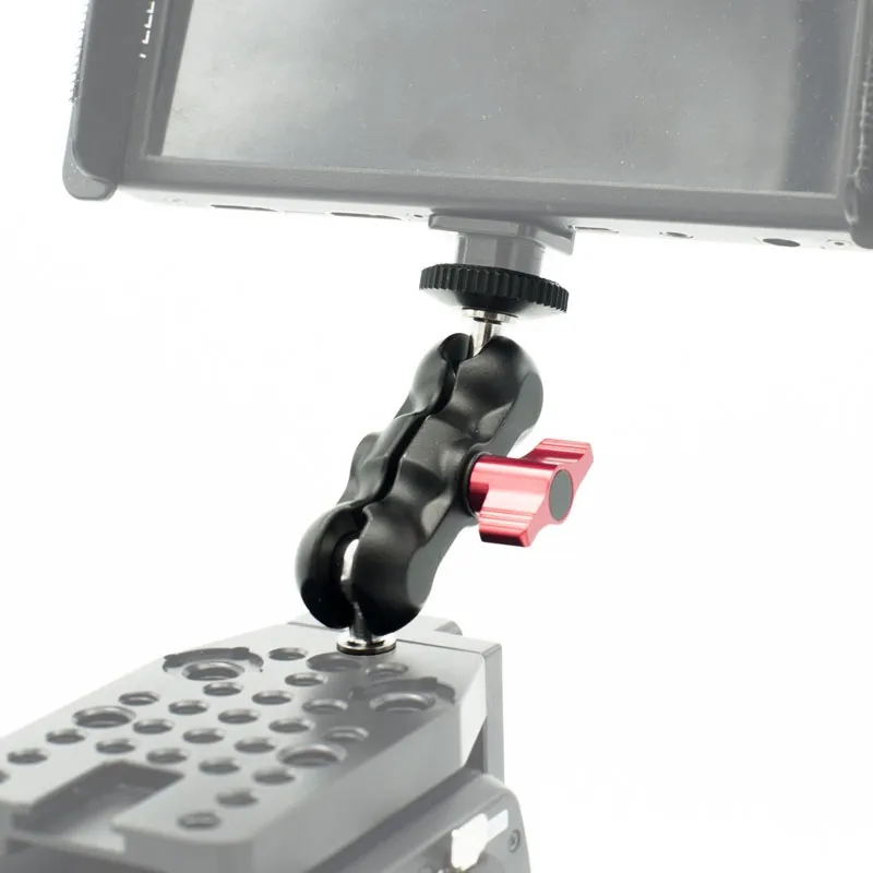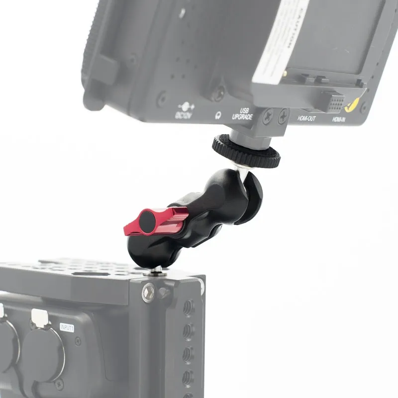 The Caruba Bean Magic Arm for Monitor Light Large is equipped with a handy ball head that you can put in different positions. There is a 1/4" connection at both ends with which you can attach the magic arm to your cage, rig or top handle. You can attach accessories such as a field monitor to the ball head.