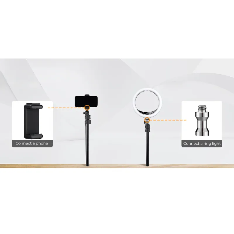 The K&F Concept C-Clamp Desktop Stand kit includes everything you need to build a professional photo/video station: a clamp stand, ball head, lighting mount, phone holder, and thread adapter. This allows you to easily adapt your workspace for a variety of uses, from studio recordings to video conferences and live broadcasts.