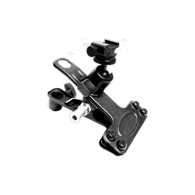 Constructed with solid steel, the Ali clamp features a sturdy steel ball head for off-camera flash lighting in a variety of situations. The clamp also comes with adjustable aluminum cold shoes, which offer not only different size holders for flash lights but also a more long-lasting operation than plastic ones. It is easy and convenient to attach the clamp to a plank or tube ranging from 5-40mm, thanks to the strong spring steel equipped inside the clamp. The 16mm stud with a 3/8 thread hole and the sockets attached to the clamp can be connected with light stands and an umbrella.