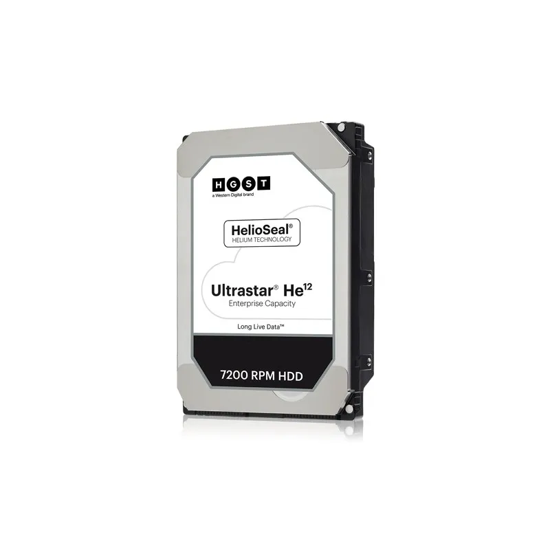 The Western Digital Ultrastar He12 is a 12 TB hard drive in a compact 3.5 form factor, utilizing a Serial ATA III interface.