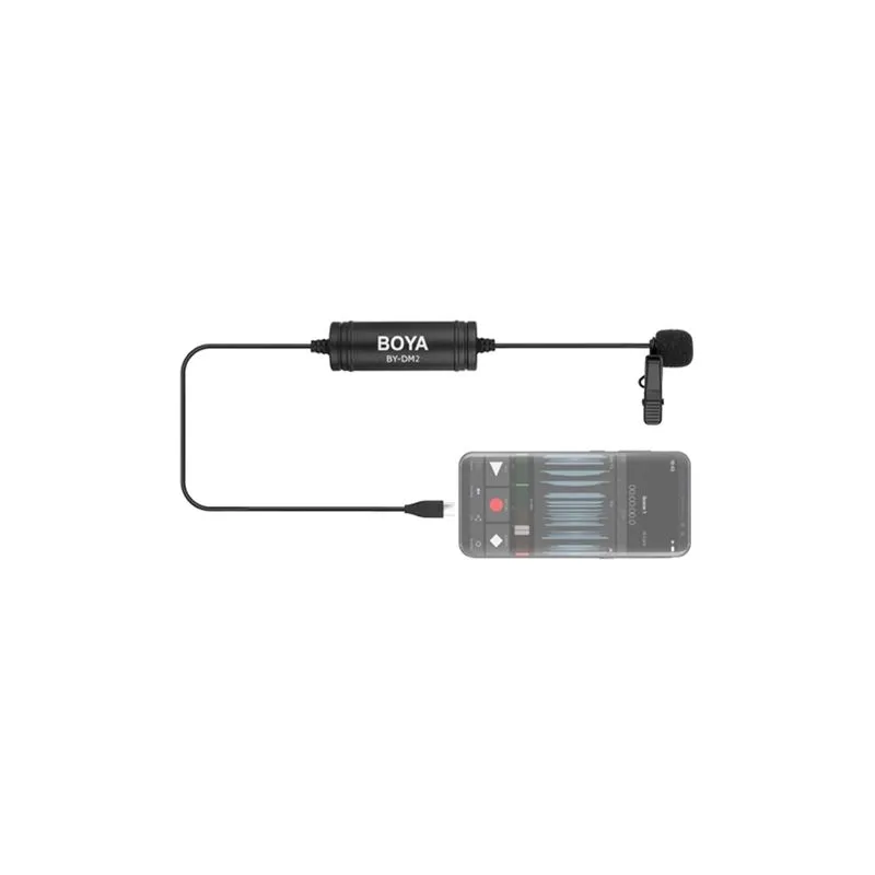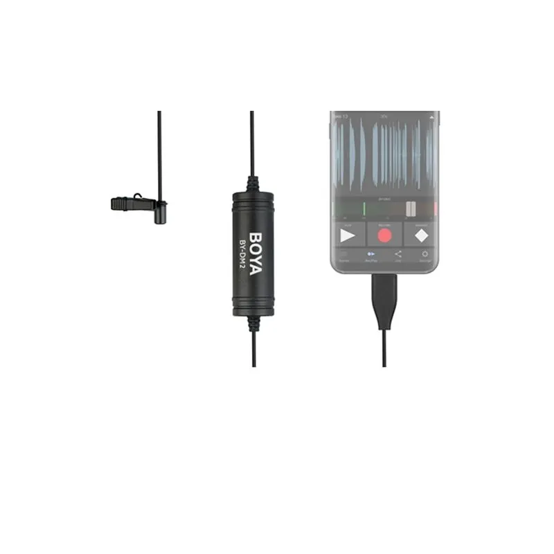 The Boya Lavalier Microphone BY-DM2 is a lightweight and compact microphone that allows you to record high-quality voice and other sounds with use of your smartphone. The BY-DM2 is compatible with all Android devices that have a USB-C connection (Android version 5.0 or later). The included microphone clip allows you to mount the microphone close to the sound source. The omnidirectional directivity ensures that sound is continuously recorded at the same volume. It does not matter from which side you talk into the microphone. Because the microphone gets its power from your smartphone, you do not need batteries.