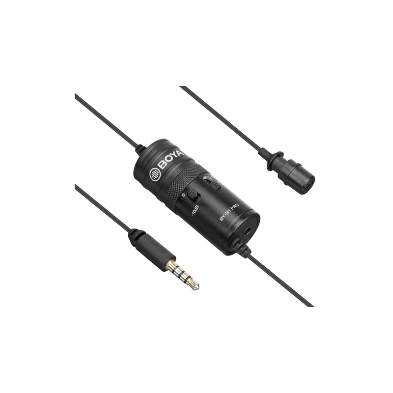 Boya's BY-M1 Pro is a professional lavalier microphone, suitable for smartphones and (dslr) cameras. Thanks to the cable length of 6 meters, you have enough freedom of movement. What's special is that the BY-M1 Pro is suitable for both smartphones and cameras. A special button allows you to switch between these two modes. When you use the BY-M1 Pro with a camera, the LR44 battery does its job; it gives the microphone its power supply. A 3.5mm to 6.3mm adapter is included to connect the BY-M1 Pro to more professional cameras.