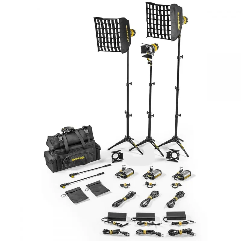 Dedolight offer these lights with a battery ballast, because many of the small teams love to work with batteries. But then, sometimes you may want to keep such a light running for many hours and for this we have a very small, lightweight and easy-to-use AC adapter that works with all incoming voltages anywhere, allowing you to use these lights day in, day out, without ever switching them off.