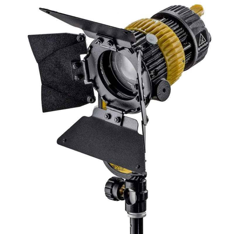 The only way we could build this light so small and at the same time so powerful, was to include a fan. Normally, in our profession this is a bad word. It took us some time to achieve wonderful results, where we do have a fan and we do keep the LED heat very low, which will contribute tremendously to the longevity of the system, but where we also managed to cut down the noise so that it is barely audible. When you put your ear right next to the side of the light, you will hear a noise that sounds like a lazy bee in neighbor’s garden. When you put your ear to the front of the light (you can do that, there is no heat coming out the front) you will not hear anything. We are very proud of this. Our codeword for lights with a fan is ‘Turbo’. This is the secret why we were able to build such a powerful light in such a small size and keep it quiet, but with all the attributes that you expect from a dedolight.