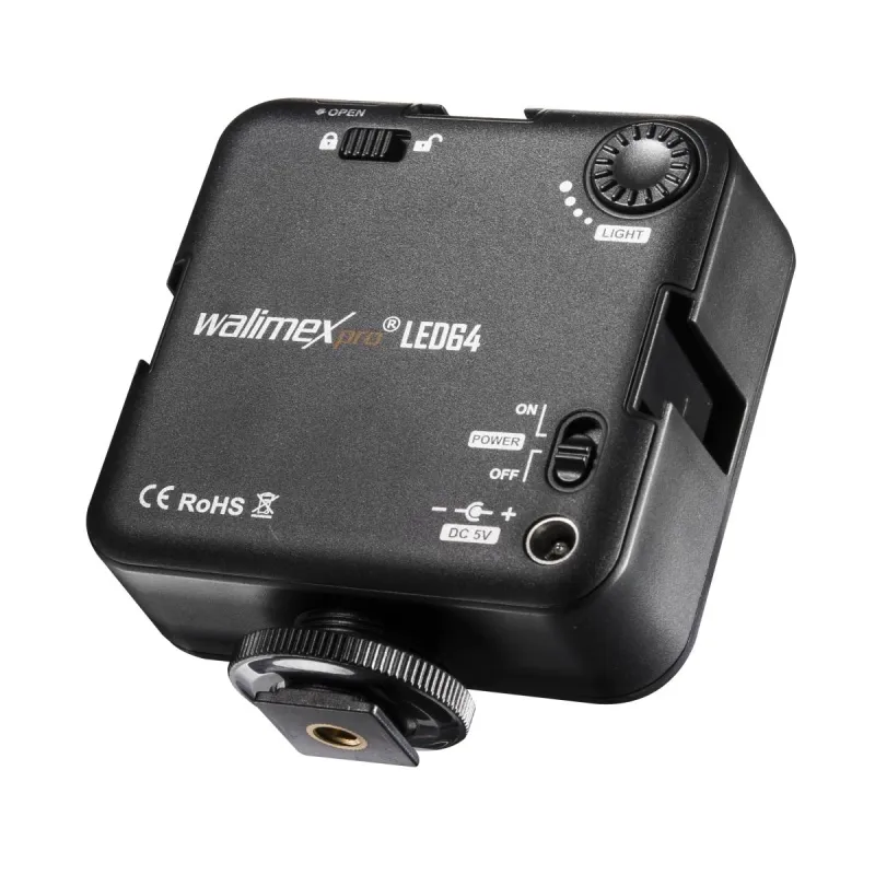 The video light, which is powered by 4 AA batteries, is the ideal solution for all Actioncams, like e.g. GoPro Hero, Camcorders and DSLR and with its 64 powerful LEDs it ensures high light gain and thereby sufficient brightness in case of inappropriate ambient light. This is of advantage when shooting in the dark or in insufficiently illuminated rooms. The most convenient feature is the fact that the light intensity can be infinitely dimmed.