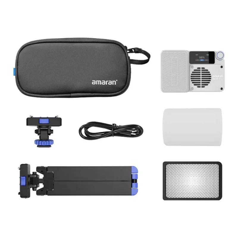 The Amaran Ace 25x Kit is a compact, travel-ready bi-color LED light designed for creators. With a power output of up to 32W, it features the amaran Ace Lock quick-release mount, offering double the brightness, battery life, and charging speed compared to similar lights.