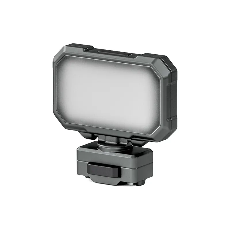 The Tilta Khronos Mini LED Panel in Space Gray is designed for content creation, offering a compact size of 2.6 x 4.4 x 1 inches and weighing only 8 ounces. It seamlessly attaches to Khronos Pro/Pro Max Cases, providing flexibility with a 30 tilt and 350 horizontal rotation. The panel offers three brightness levels and boasts a high CRI of 95 for accurate color reproduction while maintaining a low power draw.