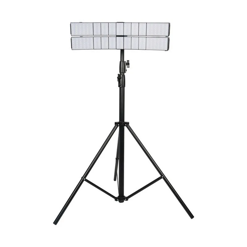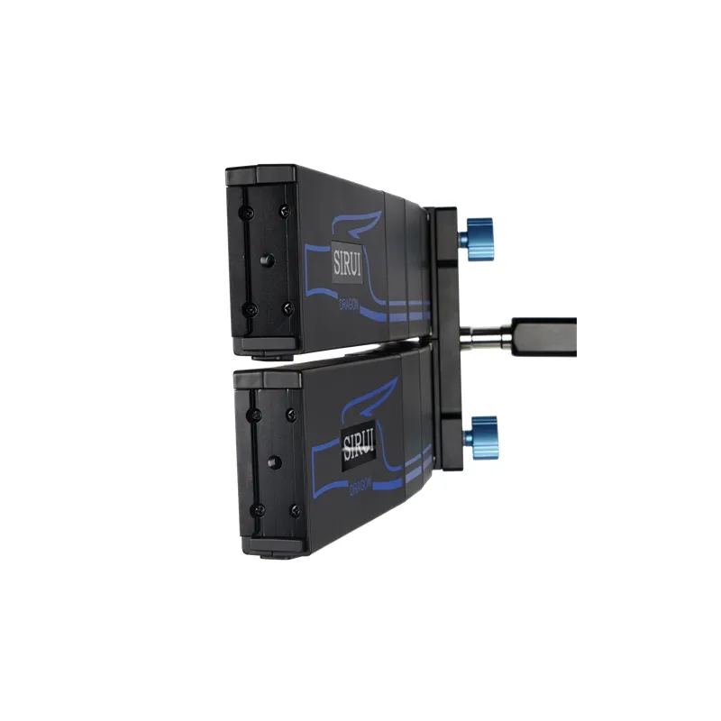 This kit comes with a connector that allows you to stack the two lights in parallel on a single light stand. The unit can be powered with the included adapter or by an optional NP-F970 rechargeable battery. Control the lights locally using the buttons on the LED display or wirelessly from your phone over Bluetooth with a downloadable app.