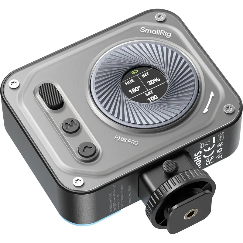 The P108 features a high-quality 5W RGBWWW light source with a CRI of 95 and TLCI of 98, delivering an impressive 1160 lux at 5600K. Its integrated rectangular soft light panel ensures smooth transitions between horizontal and vertical lighting setups. This light excels in professional color rendering and offers various built-in special effects. It is powered by a 1500 mAh lithium polymer battery, supporting USB-C charging, providing up to 1.2 hours of full power or 3 hours for regular shooting.