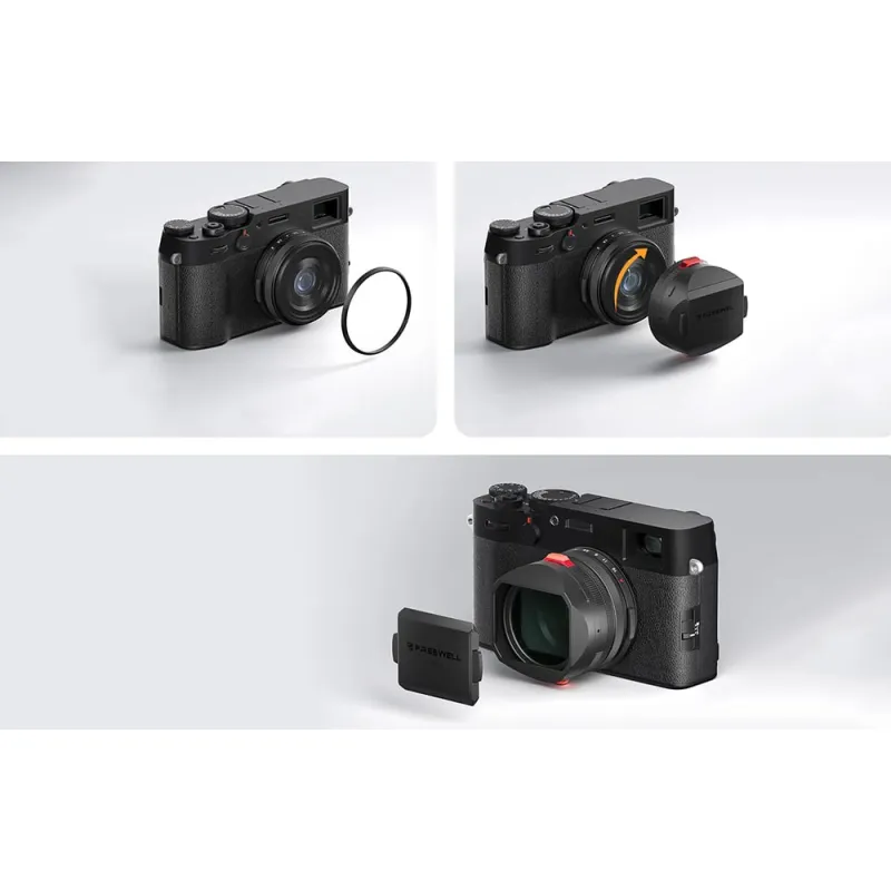 The Freewell Sunshield for Fuji X100 Series offers lens protection and a built-in CPL/Black Mist filter (49mm). The polarizing filter reduces glare and improves color saturation, which works well for landscape photography, among other applications. The Black Mist effect softens light and is perfect for portraits and city shots.