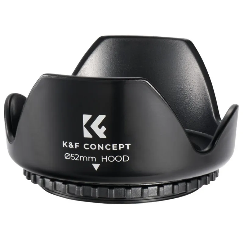 The K&F 52MM Camera Lens Hood is designed to enhance your photography by preventing unwanted light interference, improving image quality during backlight, sidelight, or flash photography. Made from high-quality composite material, this hood offers robust protection for your lens, being anti-fall, bump-proof, and wear-resistant. It is precisely manufactured to fit lens screw specifications, ensuring no light leakage or vignetting and a secure fit without noise or looseness. The package also includes a vacuum-packed microfiber cleaning cloth to keep your lens and filters clean without leaving dust or causing damage.
