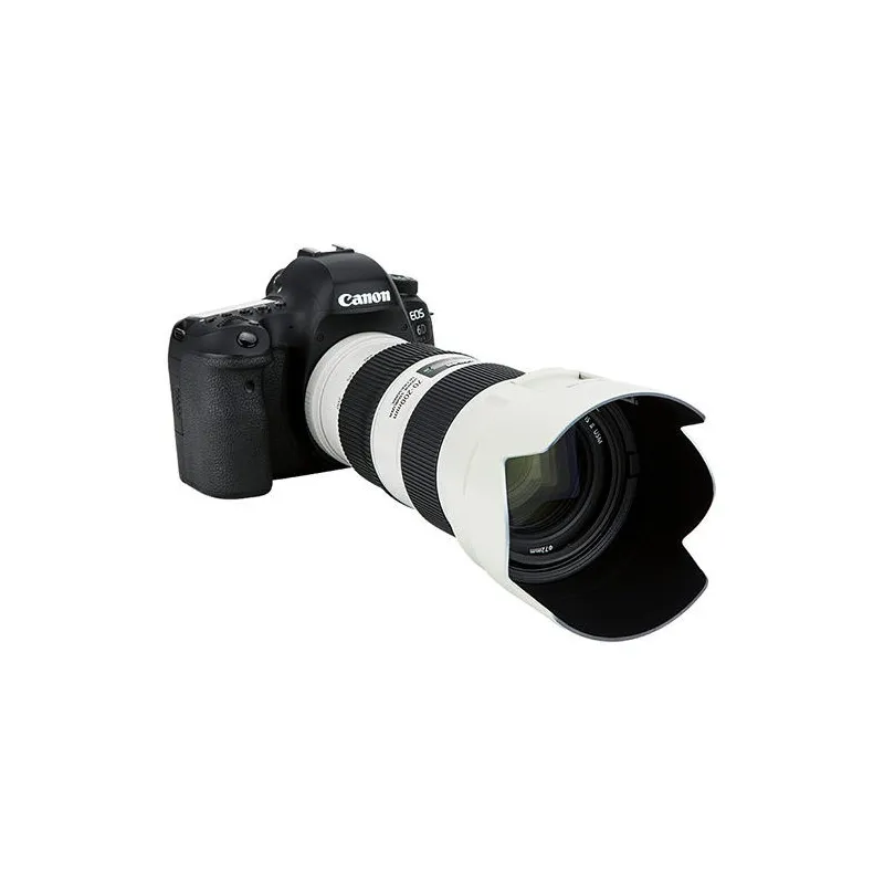 The JJC ET-78B Sun hood is specially designed for the Canon EF 70-200mm F/4L USM II objective. The ET-78B shields you objectively from unwanted incident light and limited effects such as a color hostal or a lens flare. A sun hood also offers extra protection to the front lens of your lens.