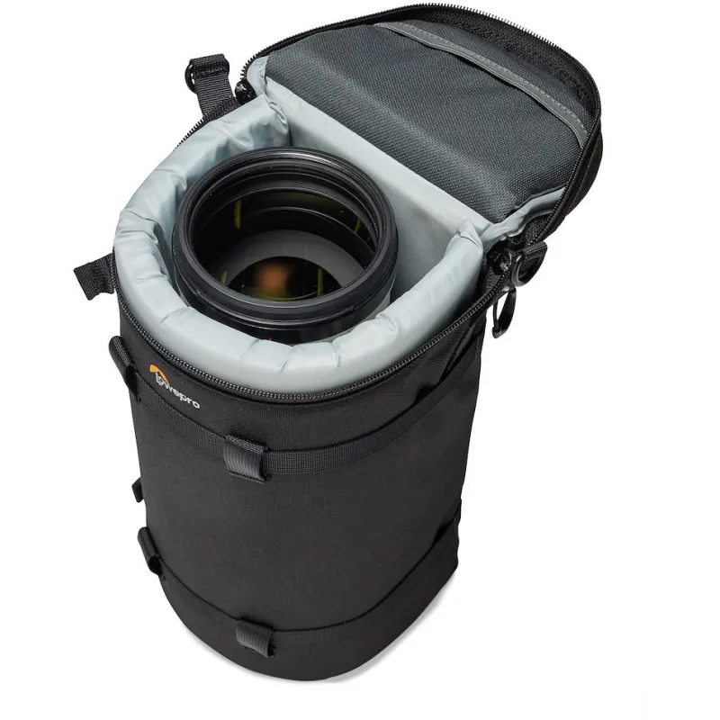 This lens case accommodates lenses up to 13cm in diameter and 32cm long. It can be used independently or attached to any SlipLock compatible bag or belt.