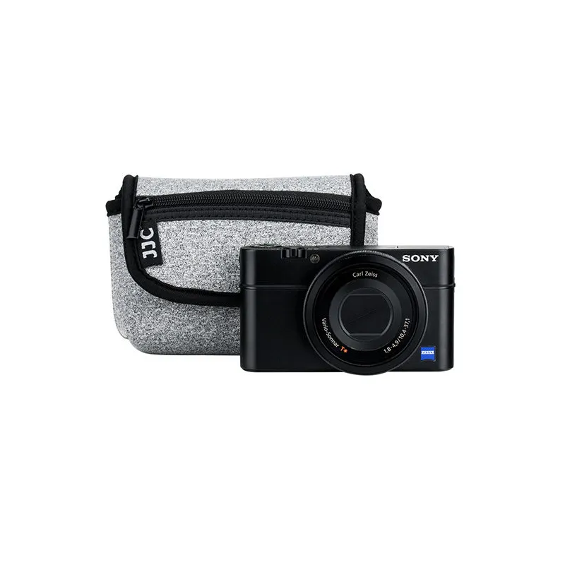 The JJC OC-R1BG Neoprene Pouch is specially designed for Compact Cameras. The soft microfiber material on the inside effectively protects your camera against scratches and bumps. The pouch of elastic neoprene is easy and quick to open through the Velcro closure. In two extra compartments, you can store your accessories, such as an extra battery, memory card, and card reader.