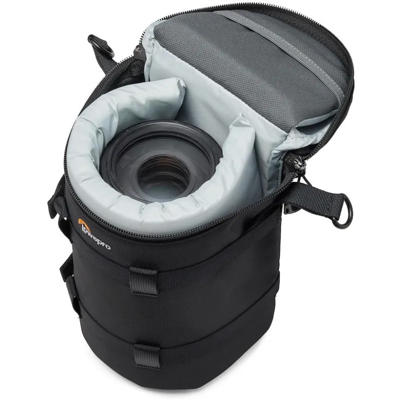 This lens case accommodates lenses up to 12cm in diameter and 24cm long. It can be used independently or attached to any SlipLock compatible bag or belt.