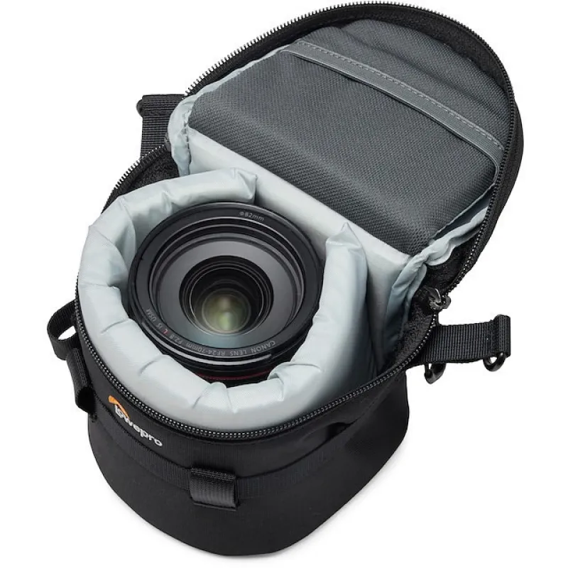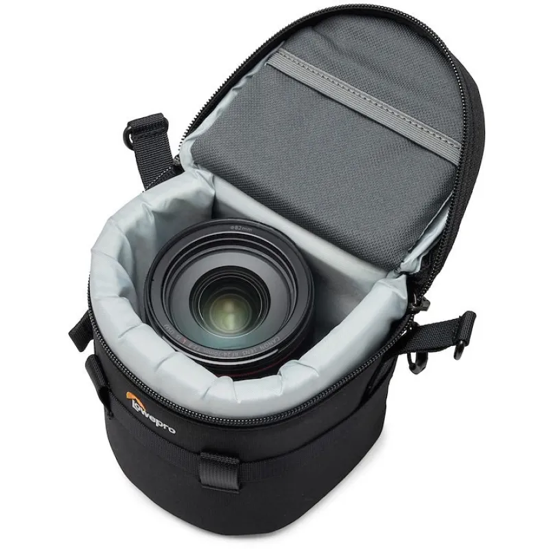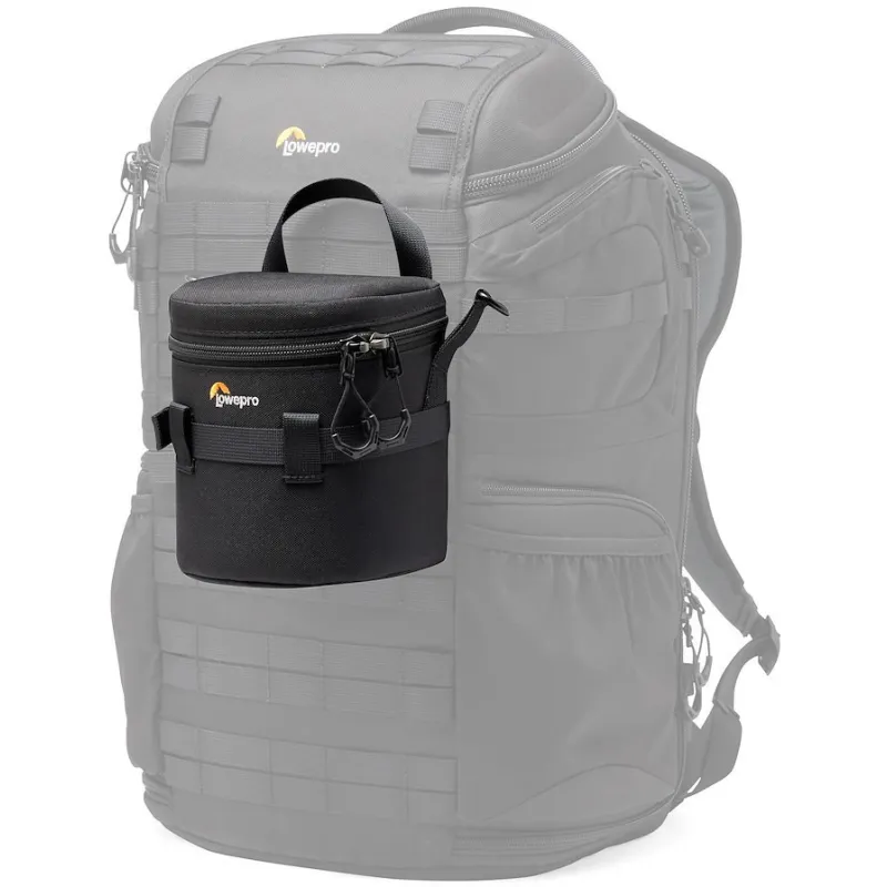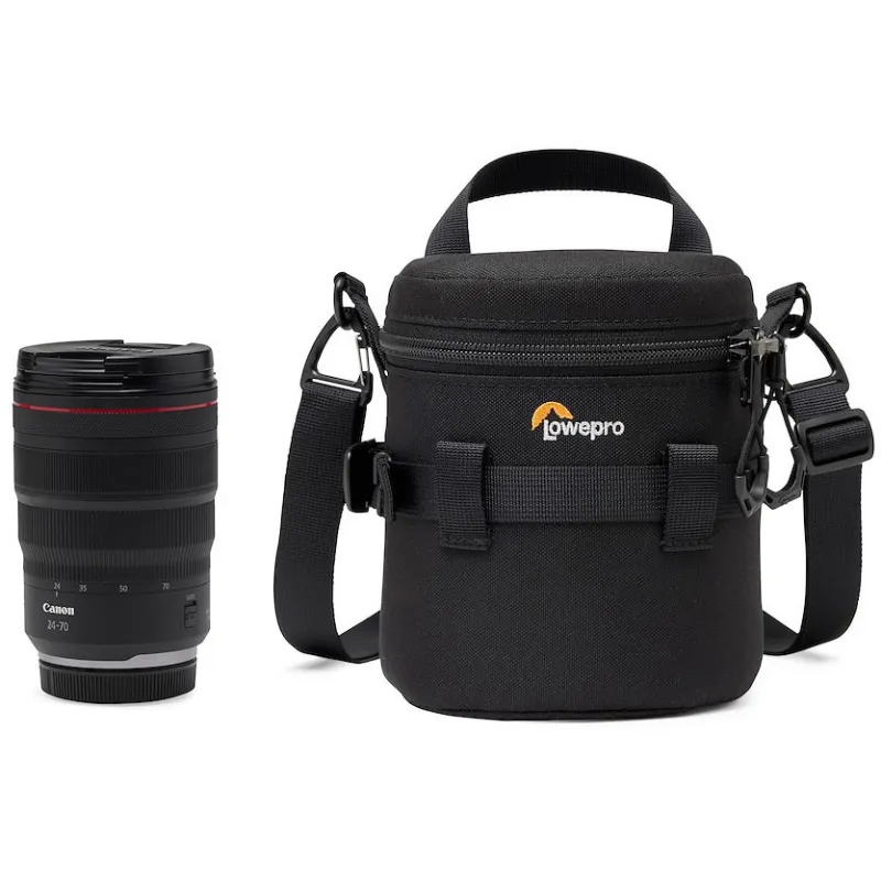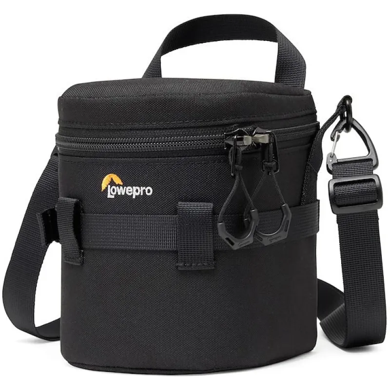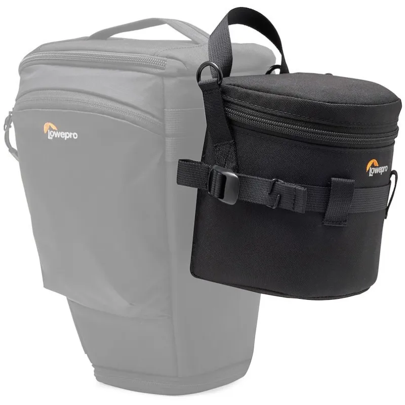 This lens case accommodates lenses up to 11cm in diameter and 15cm long. It can be used independently or attached to any SlipLock compatible bag or belt.