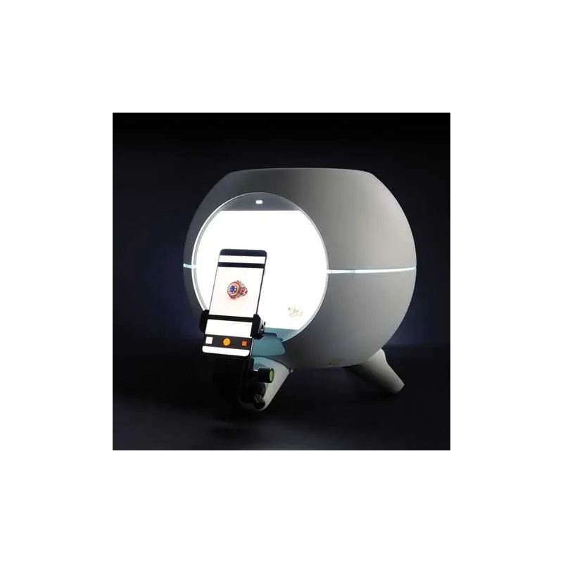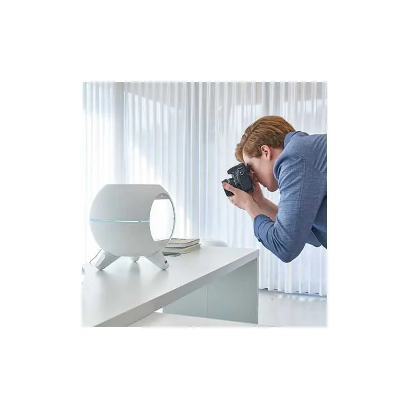 The Foldio360 Smart Dome by Orangemonkie is a complete 360 degree studio, which allows you to effortlessly take professional packshots and 360 shots of your products. You can take photos of objects up to 15x15x15 cm. The round shape of the Foldio360 ensures optimal reflection and good light diffusion. You use the Smart Dome to take product shots with your smartphone or DSLR camera with a smooth white background. You control the lighting and the built-in turntable with the smartphone app (iPhone and Android) or software for Windows and macOS (coming soon).