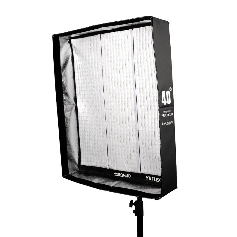 Yongnuo YNFlex180 is an innovative LED panel, characterized by exceptional light weight and foldable design. The flexible light mat of 72 by 72 cm, which you can easily install on a special rack, will provide not only high quality light, but also convenient transportation and the possibility of mounting on boom arms. The maximum output power of the lamp is as much as 180 W.