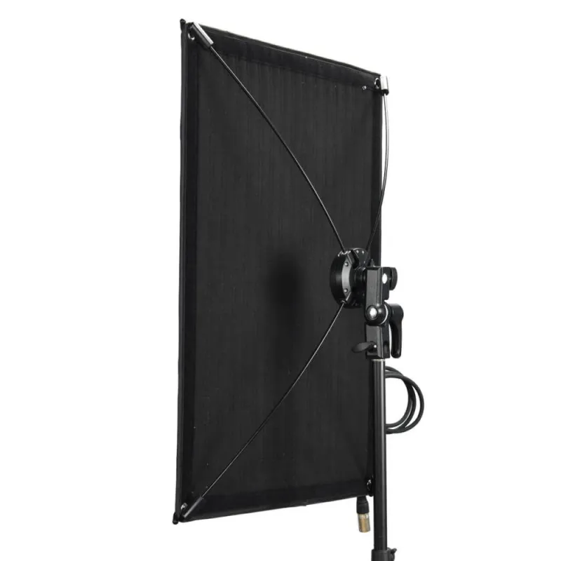 Flexible LED Light X Mount Holder, Stand Bracket Optional Wireless Remote Control incl. Carry Case + V Mount battery option Color: 3300 to 5600K, CRI/TLCI: 96/98 Passive Cooling System Dimming:10 to 100% Photometrics: 3300 lux at 1m Dimensions Mat: 40 x 60 cm Weight: 3,47 kg Battery Plate: 1 x V Mount Power Source: AC Adapter, External Battery (optional) Remote Control Type: Bluetooth (optional) RC A5 (D183631) Warranty 2 years ,
