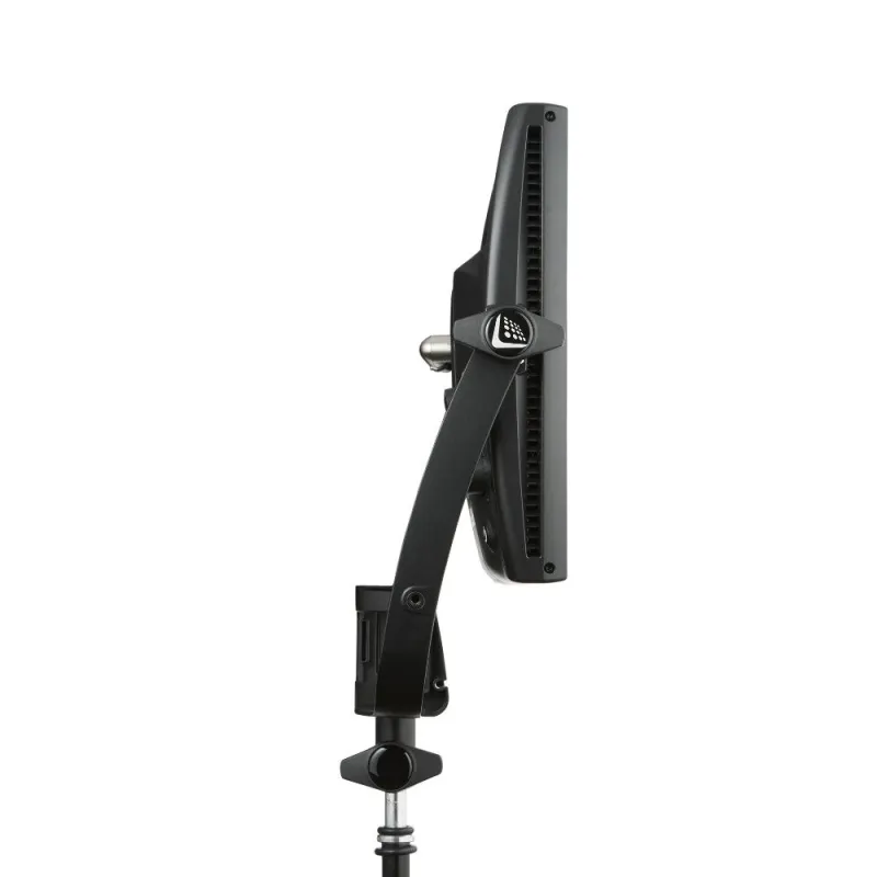 The 4.5 Center Grip Head consists of a pair of rotating aluminum discs attached to a junior 28mm (1-1/8) stud. The discs have two different sized V-shaped jaws to accept any accessory with a 5/8 or 3/8 mounting stud or tubing. They are often used for clamping ears from an overhead or butterfly system. The U-shaped rotating disc holder, welded with a junior 28mm (1-1/8) stud, is specially designed for centering the weight over the stand.