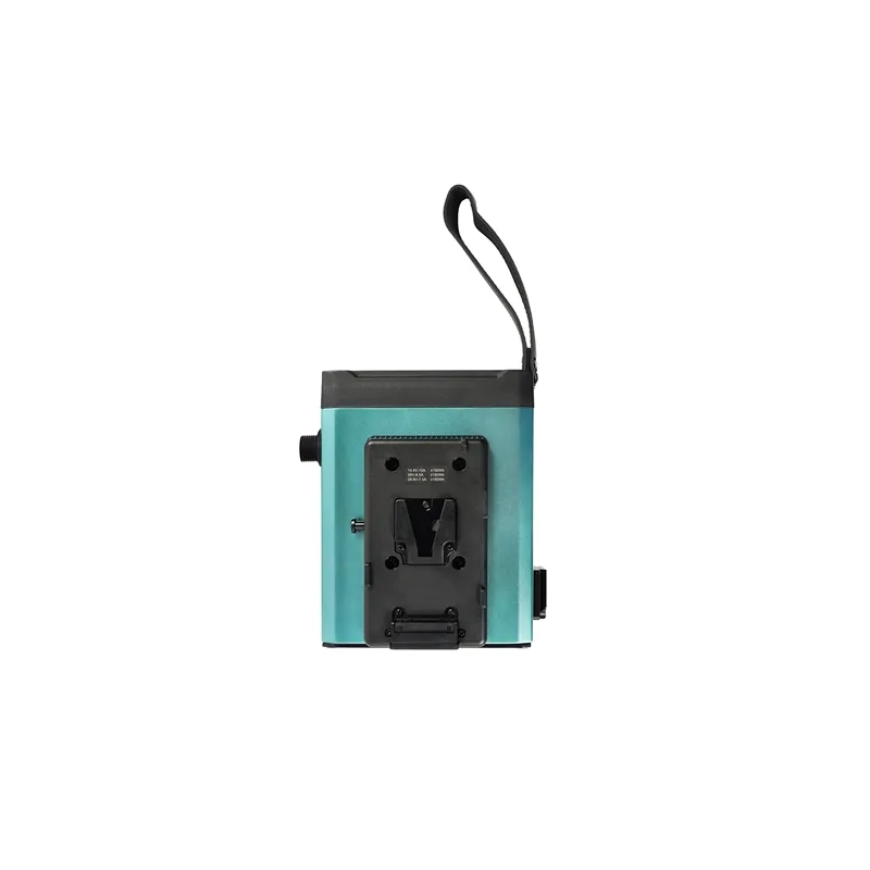 You place 1 v-mount battery on the back of the controller for power. The battery is not included as standard, but it is available as an optional accessory. Of course, it is also possible to connect the A200R to a power outlet. An EU power cable is included for that purpose. But actually you use the lamp worldwide. Because the input accepts 100-240v. No separate inverter is needed, as it is built into the controller.