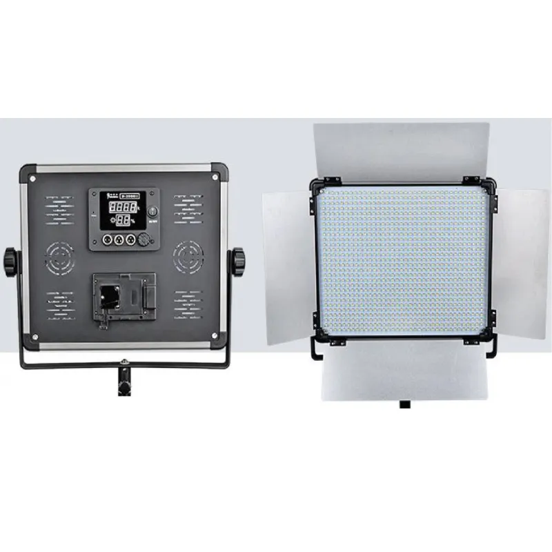 210W Bi-color LED video light, 3200-5500K, 19500 lm, 95 RA, 60° beam angle, DMX 512 protocol support. Battery (not included) or 14.5V= power supply. Includes carrying bag.