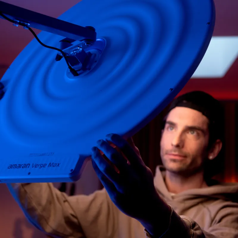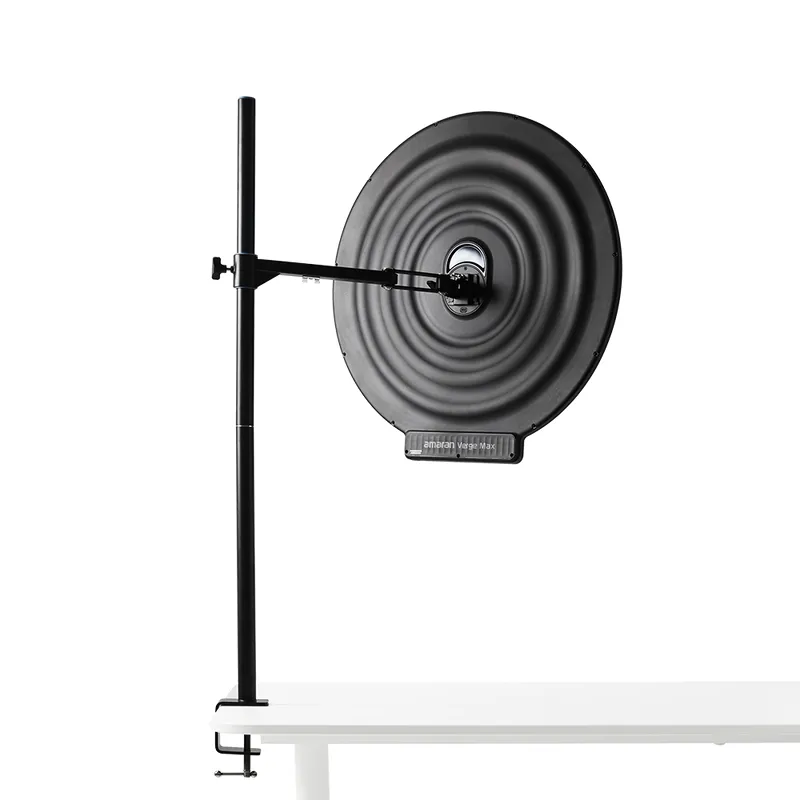 The amaran Verge Max is a bi-colour, 55cm (22in) circular edge-lit panel light designed for desktop creators and compact spaces, delivering soft, true-to-life lighting in an ultra-thin profile, without the bulk of a traditional softbox setup. With customized amaran Verge Lock mounting, edge-lit output that's soft on the eyes, and multiple ways to control, the amaran Verge Max brings studio-quality lighting to tight home studios and flexible creative setups.