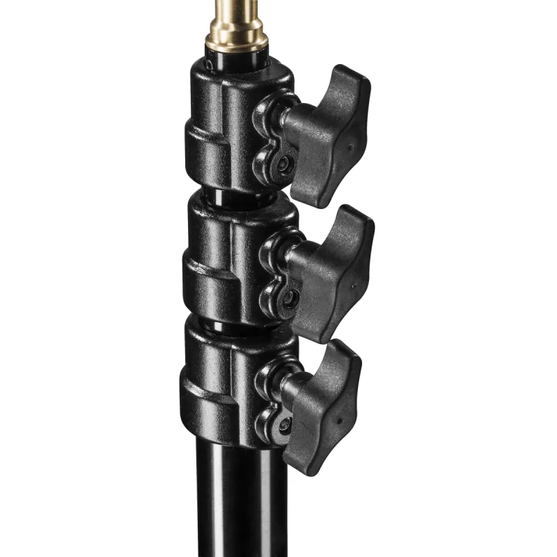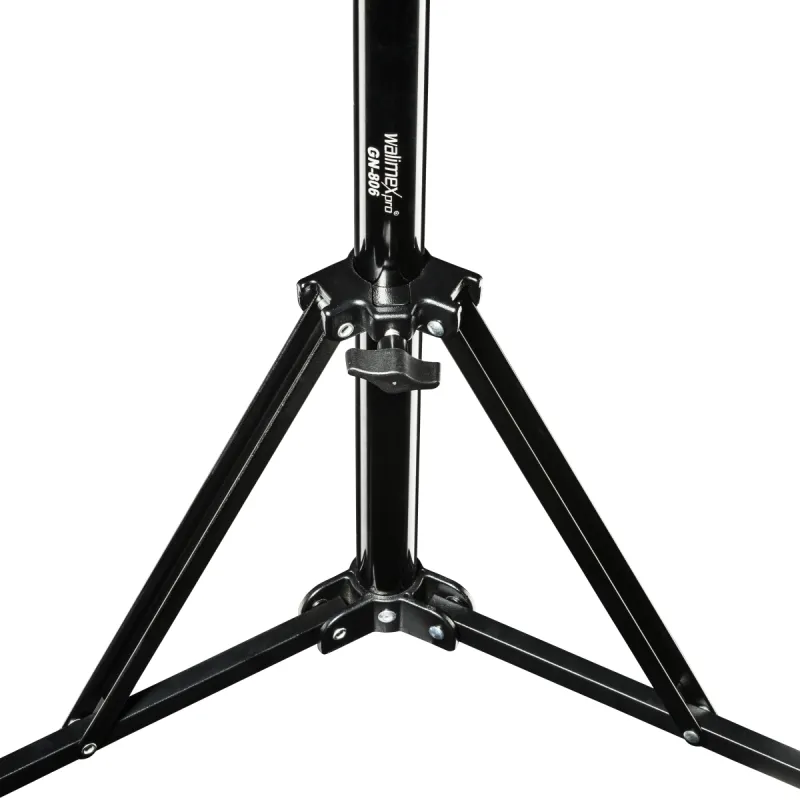 The walimex pro GN-806 tripod is a modern lighting tripod featuring a host of clever design details. Usable as a lighting or studio tripod, it features both a mid-level and a ground spreader for the tripod legs. This feature will really be appreciated when working – the tripod legs are no longer in the way and don't create trip hazards, regardless of whether you're shooting indoors or outdoors. With a footprint of 102 cm in diameter, the tripod is also incredibly stable. Able to take up to 5 kg of gear, the walimex pro GN-806 tripod can be used to mount a wide range of photographic equipment, from dedicated flash units to studio strobes, LED lights, reflectors, and a wide range of light shapers and other photographic gear.