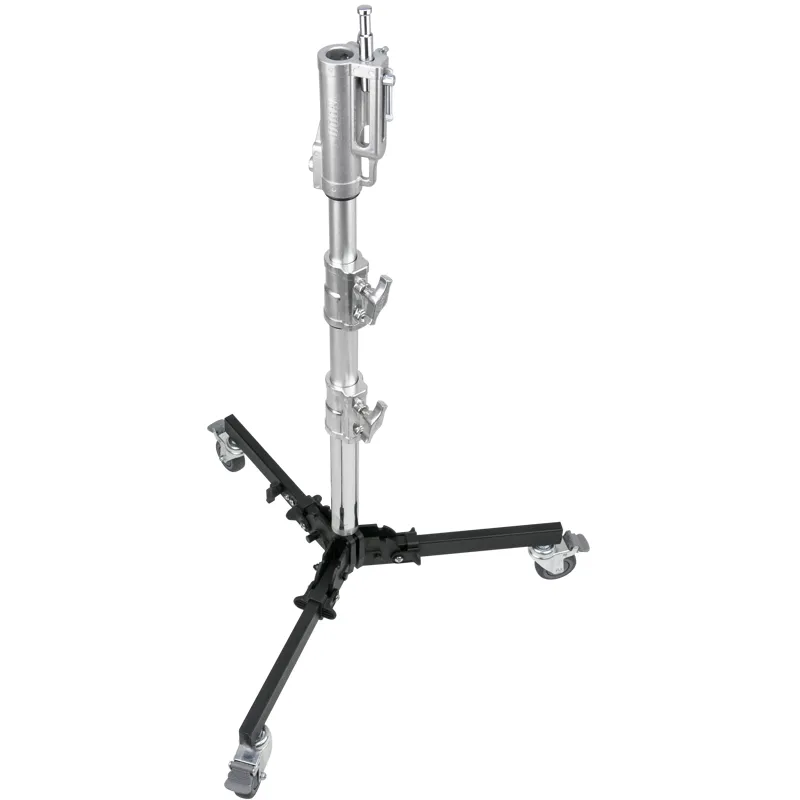 The Kupo Lowboy Junior Roller Studio Stand is a hybrid combo stand consisting of a steel base with steel sections (45mm) and aluminum riser sections (33 & 40mm) for the best mix of strength while keeping the weight down. The universal combo head features both junior 1-1/8 and baby 5/8 receivers as well as a retractable flip-down baby pin. Oversized brake castings give this short brute an impressive load capacity of 55lbs. The steel base features smooth rolling locking casters. The legs fold up and lock in place against the main riser section for easy transportation and storage. The Lowboy Junior Roller has one leg that can be extended for increased stability, and one leveling leg that can be extended to level the stand on inclines or uneven surfaces such as a flight of stairs. This stand has a maximum operating height of 120cm (47.2) and a minimum operating height of 81cm (31.9).