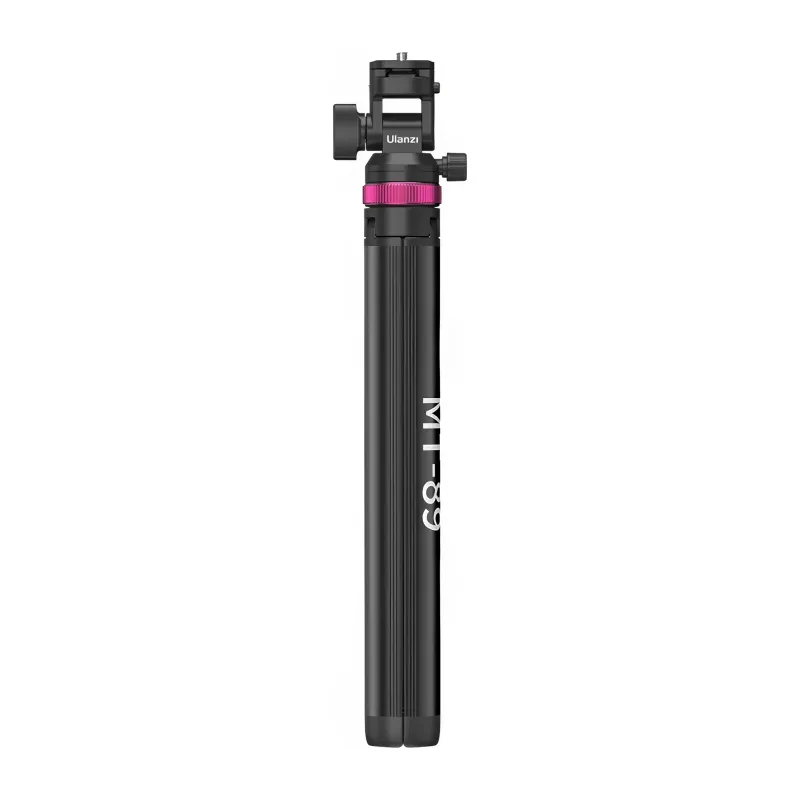 The Ulanzi MT-89 is a versatile and compact tripod suitable for LED lamps, cameras, and action cams. Its adjustable height ranges from 40.5 cm to 201 cm, featuring an 8-section telescopic design for easy perspective changes.