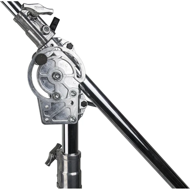 Constructed from chrome plated steel and featuring square-end legs, the boom arm can support 29.9 kg at its minimum extension of 1.5m and 8 kg at its maximum extension of 2.7m. It is perfect for a medium-sized light fixture with a softbox or umbrella attached.