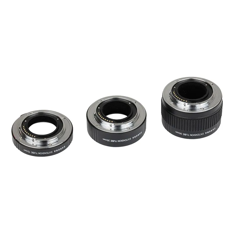 The Caruba Extension Tube set Chrome for Olympus consists of three extension tubes that can be used separately, or combined. The extension tubes do not have any optical elements and therefore it is possible to photograph subjects larger and from a closer distance, without changing the quality of the image. The extension tubes have a chrome mount and are compatible with older Olympus Four Thirds lenses. Features such as auto focus and TTL light metering continue to work as usual. However, it is recommended to focus manually, as focus is very tight.