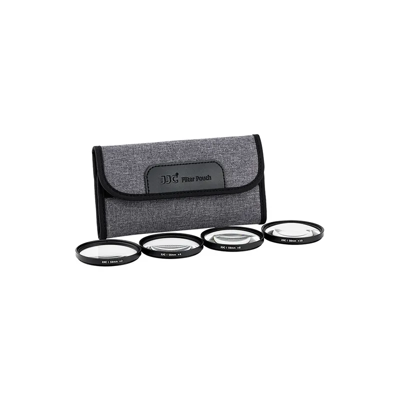 The JJC F-CK series Close-Up Macro Filter Kit fits close-up shooting well, allows you to create macro effects and takes you into the mysterious micro world. The filter adopts high quality optical glass with fine grinding, which enables good image quality and high sharpness; The frame is made of premium aluminium alloy with non-glare matte finish on the inside to block stray light from entering the edge of the filter. This filter can be used to shoot flowers, insects, jewellery, water drops, garage kit......or words. The stamens can be seen clearly and the fluff of insects can be distinguished easily. With this close-up filter, you will become a member of the micro world and you can even shoot blockbusters in your daily life. The JJC F-CK series close-up filter kit includes 4 pieces filters of different diopters (+2, +4, +8, +10), with different thread sizes available from 40.5-77mm, to meet your needs. A free protective filter pouch is included in the package to protect the filter from impact and scratches.