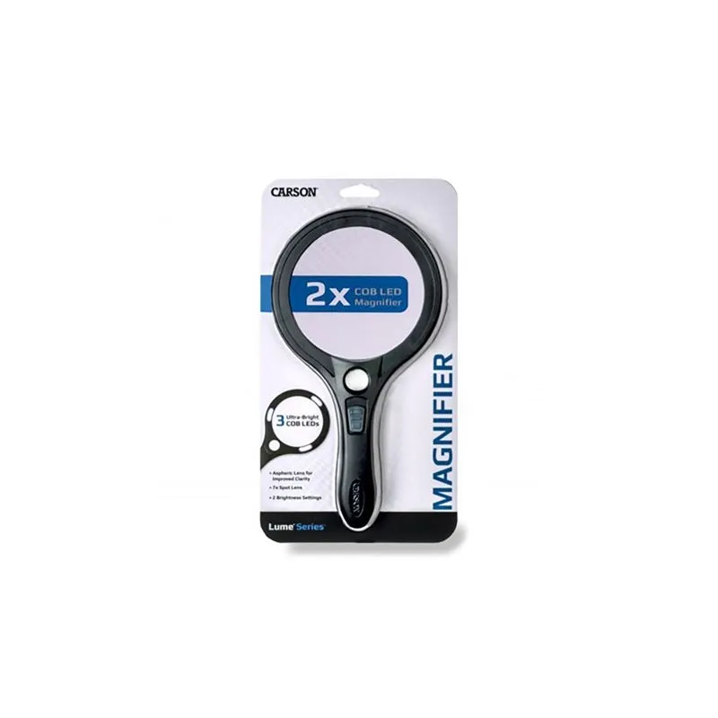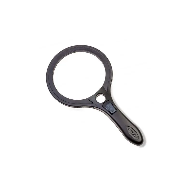The Carson AS-95 is a compact handheld magnifier with 2x magnification, a 110mm lens and built-in LED lighting. Ideal for reading small print, even in low light situations. The magnifier has an aspherical lens. This provides a clearer image while greatly reducing edge-to-edge distortion.
