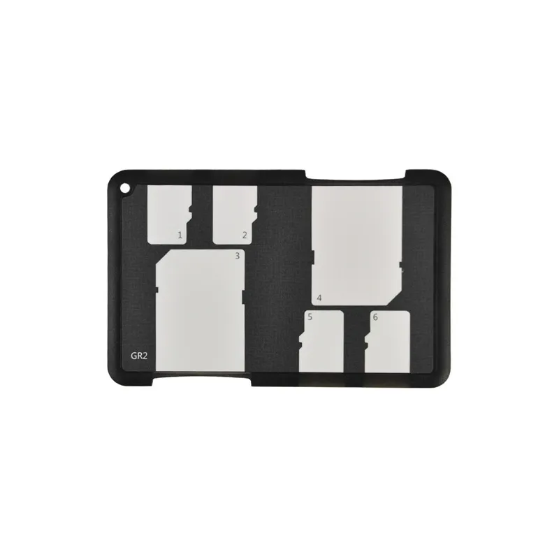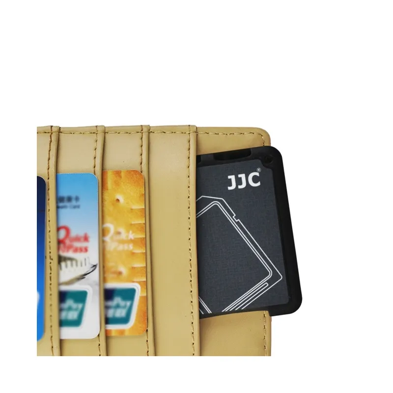 The JJC MCH-SDMSD6GR Memory Card Holder Black is extremely handy when you use multiple memory cards and need an easy and compact storage place for them. The holder with the size of a bank card offers space for four micro SD and two SD cards thanks to preformed cutouts. These keep your cards securely in place, yet they are easy to take out again. Due to its compact size, you can simply store the JJC Memory Card Holder in the same place as your bank cards and/or your driving licence. You can even keep it on your key ring through the hole in the housing.