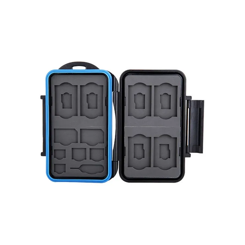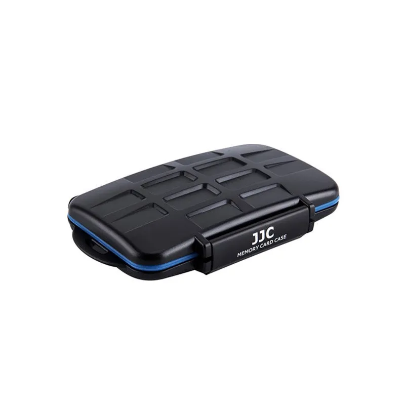 The JJC MC-STM18 Memory Card Case is a strong and splash-proof storage case for six SD memory cards, six micro SD memory cards, two SIM cards, two micro SIM cards and two nano SIM cards. The moulded rubber interior absorbs any shocks and makes sure the memory cards and sim cards stay in position when you put the Memory Card Case in a bag or pocket. Your precious cards are also well protected from dust and other dirt. The ergonomic locking system is easy to open and close again.