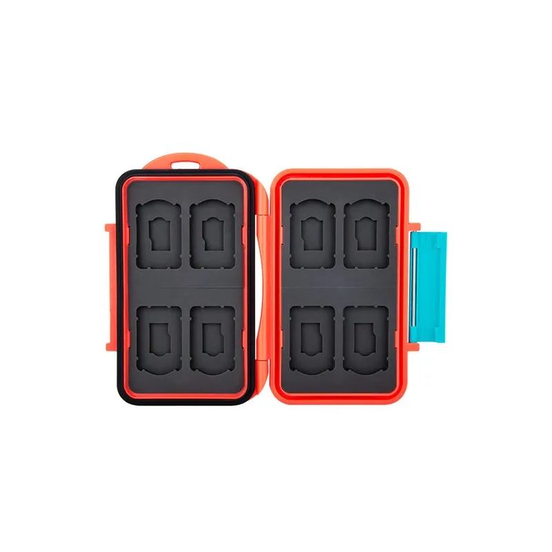 The JJC MC-SDMSD16 Memory Card Case is a strong and splash-proof storage solution for eight Nintendo Switch Game Cards and eight micro SD memory cards. The moulded rubber interior absorbs any shocks and ensures the memory cards stay in position when you put the Multi-Card Case in your bag. It also protects your precious cards from dust and other debris. The ergonomic locking system is easy to open and close again.
