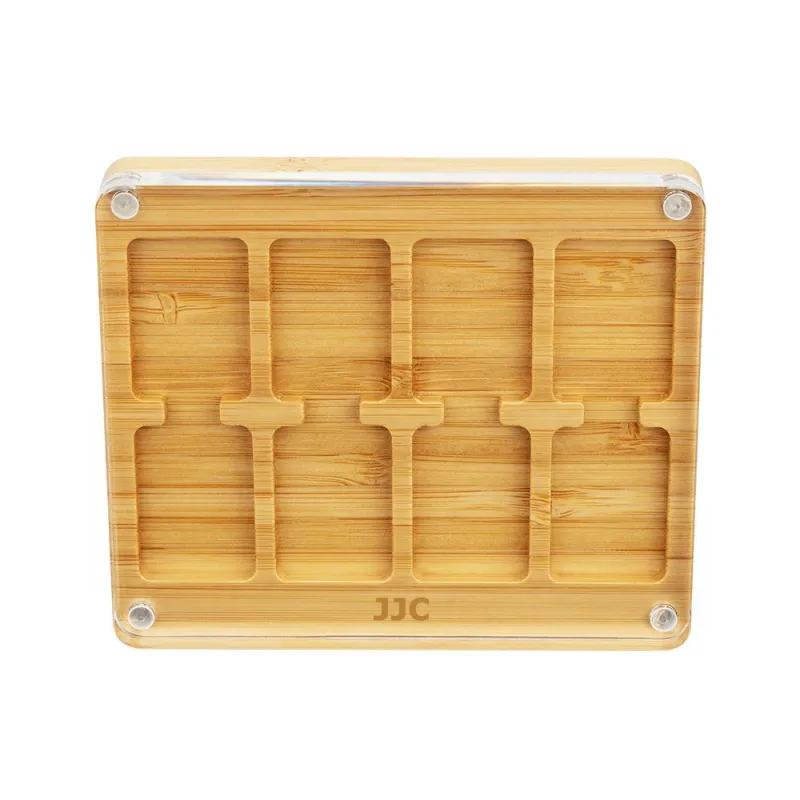 The JJC CW-NS2 Game Card Case is a stylish storage case made from bamboo wood for 8 Nintendo Switch game cards. The custom milled interior ensures that the memory cards stay in position. The lid of the Game Card Case is made of transparent acrylic. The magnetic locking system makes it easy to open and close the Game Card Case.