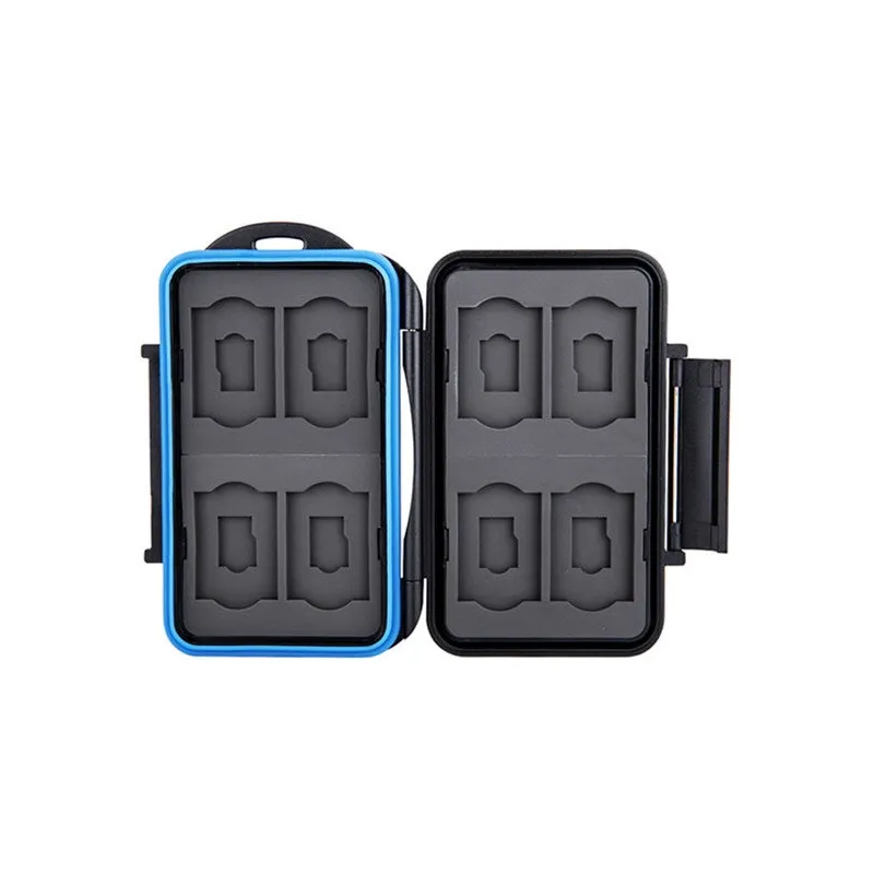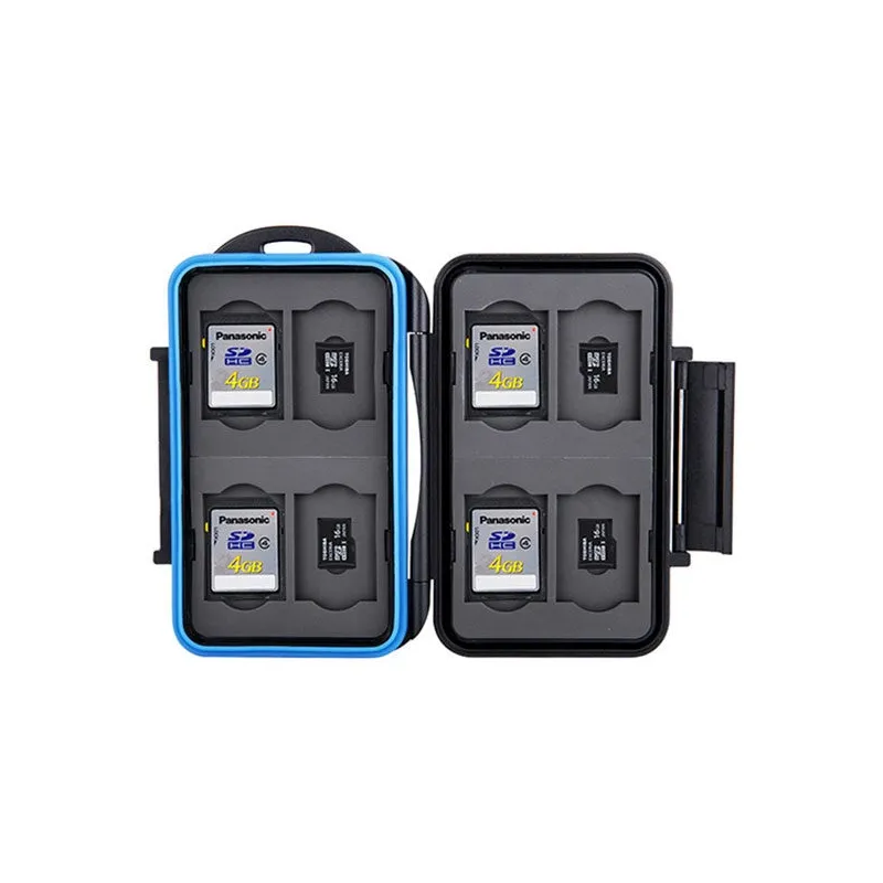 The JJC MC-ST16 Memory Card Case is a strong and splash-proof storage case for eight SD and eight micro SD memory cards. The molded rubber interior absorbs any shocks and ensures that the memory cards remain in position when you put the Memory Card Case in a bag or pocket. Your precious cards are also well protected from dust and other dirt. The ergonomic locking system is easy to open and close again.
