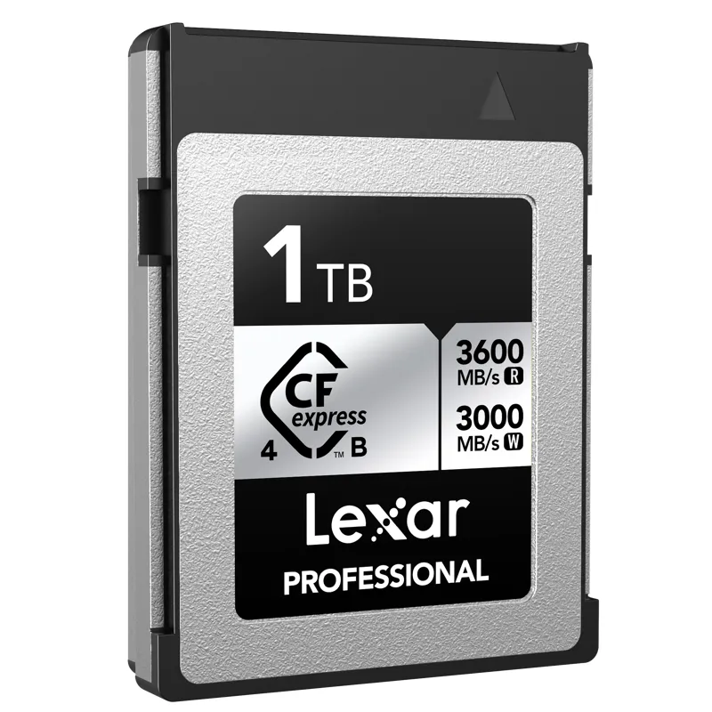 The Lexar Professional CFexpress Type B Card Silver Series is engineered for advanced cinema cameras and high-resolution DSLRs, enabling the capture of high-quality images and 4K video. It boasts impressive speeds of up to 1000MB/s read and 600MB/s write.