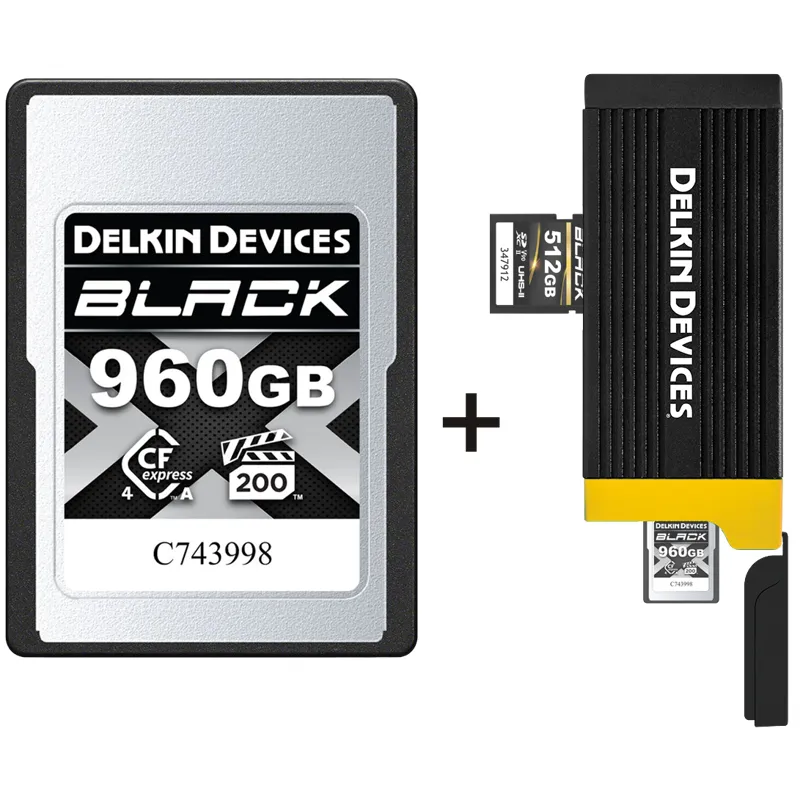 This Delkin Devices bundle puts uncompromising speed and reliability in your hands. At its core is the 960GB BLACK CFexpress Type A 4.0 memory card, engineered for demanding professional use. Ideal for raw and continuous burst photography, as well as 8K, 6K, and 4K video at high bitrates and frame rates, it leverages a PCIe interface to achieve: