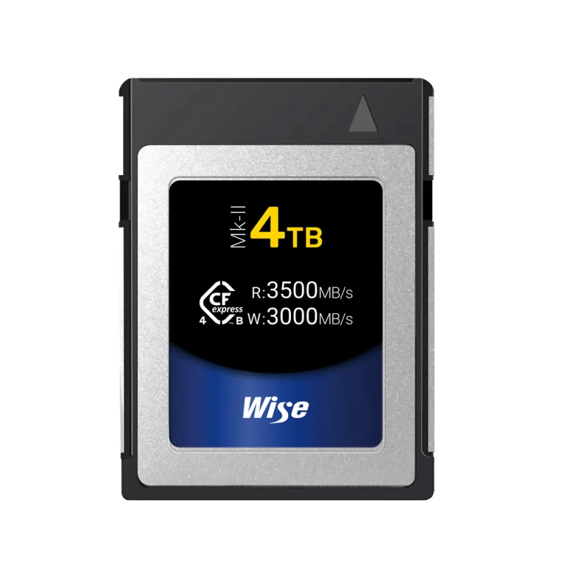 The CFX4 B and CFX4 B PRO series CFexpress media enable rich dynamic range 8K RAW continuous shooting for high-end DSLR, mirrorless, and video cameras with ease. The Wise 4TB CFexpress 4.0 Type B Mk II Memory Card operates on a PCIe Gen 4 x2 interface and offers high speeds, more than 6 times faster than the best XQD memory media.
